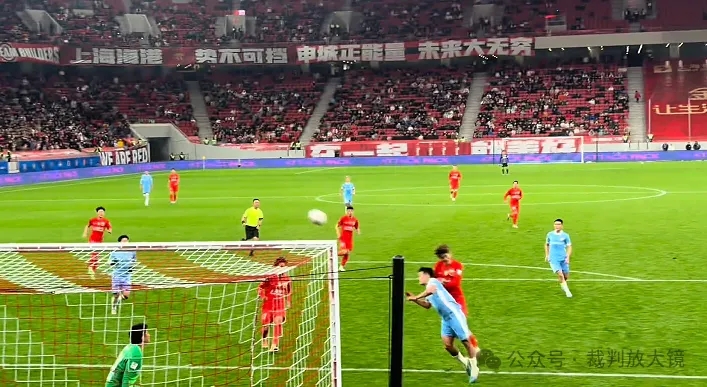 分析刘祝润的进球我们先看一下魏震防守时疑似从身后撞到何超,VAR核查后没介入,海港发出球门球后,形成了刘祝润的这个进球,一来一回,两个关键判罚。