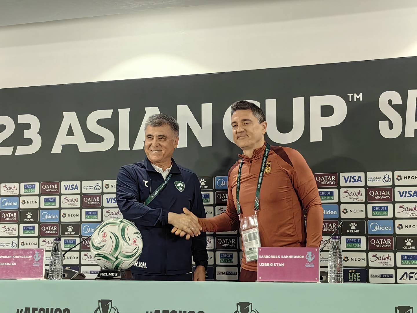 北京时间1月16日,U23亚洲杯四分之一决赛乌兹别克斯坦vs中国的赛前新闻发布会在吉达的阿卜杜拉-费萨尔王子体育场进行。据懂球帝记者 报道,发布会开始前,安东尼奥和乌兹别克斯坦主帅友好合影。